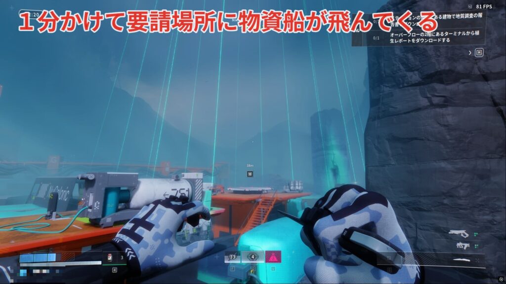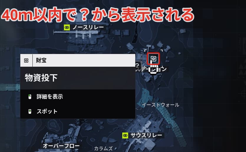 画面上に?で最初は表示されていますが、40m以内に入ると物資投下が表示されます。