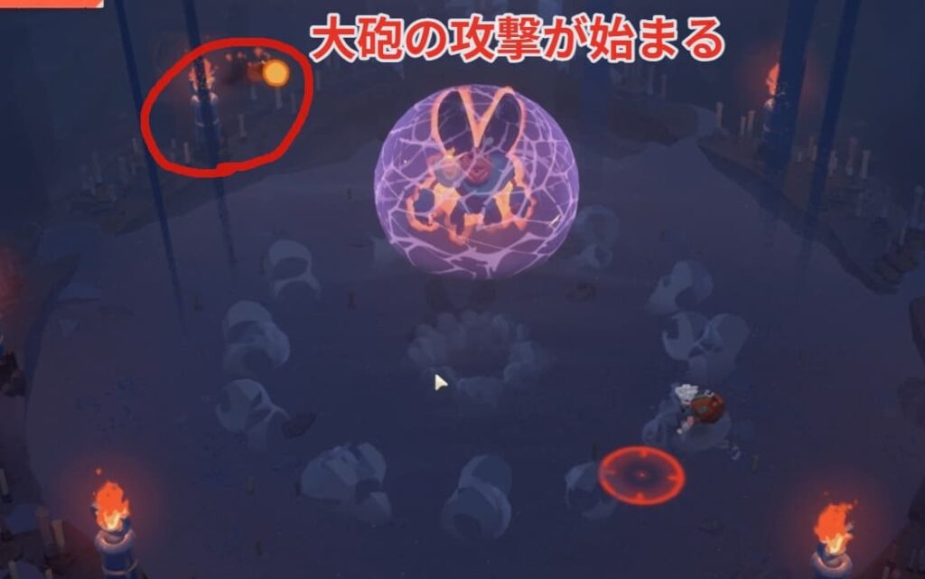 次の一定量までダメージを与えると、マップ上にある大砲の攻撃が始まります。