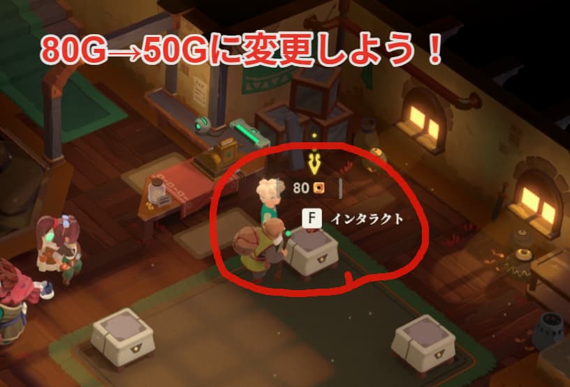 ショーケースに近づいて80Gを50Gに変更しましょう。