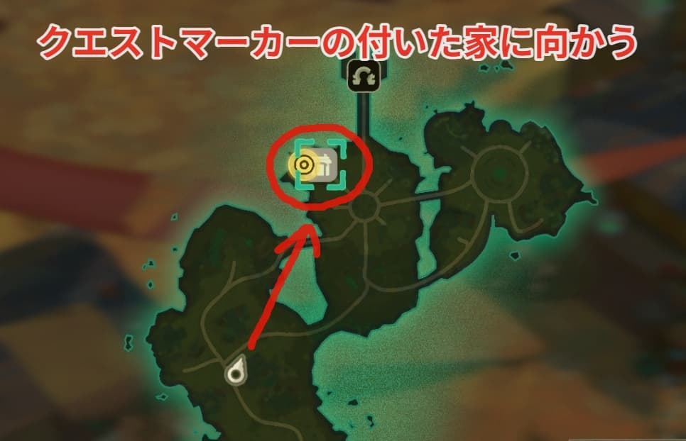 村に戻ってきたらクエストマーカーの付いた家を目指しましょう!