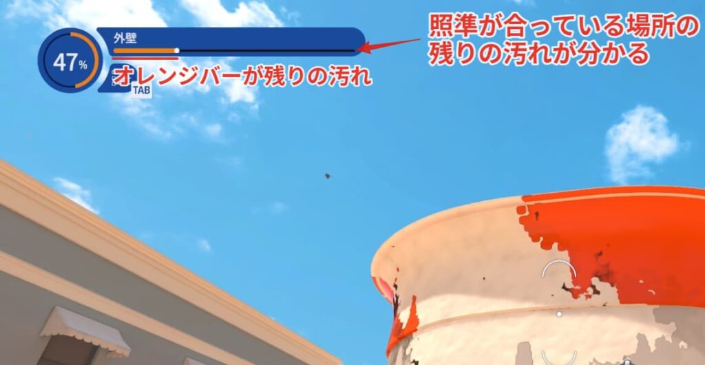 【4】左上で照準の合っている場所の残りの汚れ具合を確認できる