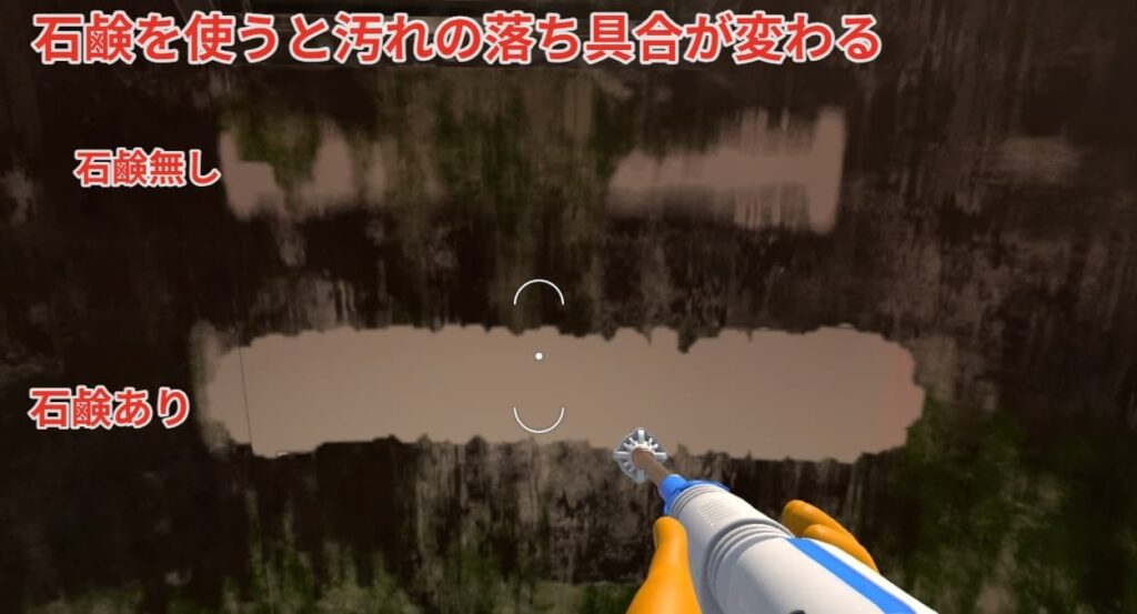 ↑石鹼を使った際は水のノズル口が広くても汚れが簡単に落ちる。