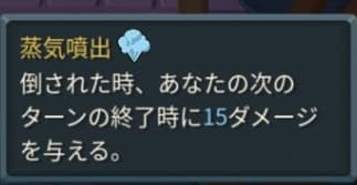 - ターン④15HP回復+蒸気噴出+3(バフ)