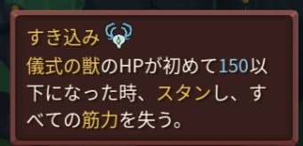 儀式の獣はすき込みと呼ばれるプレイヤーに有利なバフを1ターン目に付与してくれます。