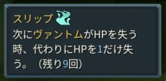 ヴァントムは戦闘開始からスリップと呼ばれるダメージを9回分1に減らすバフを持っています。