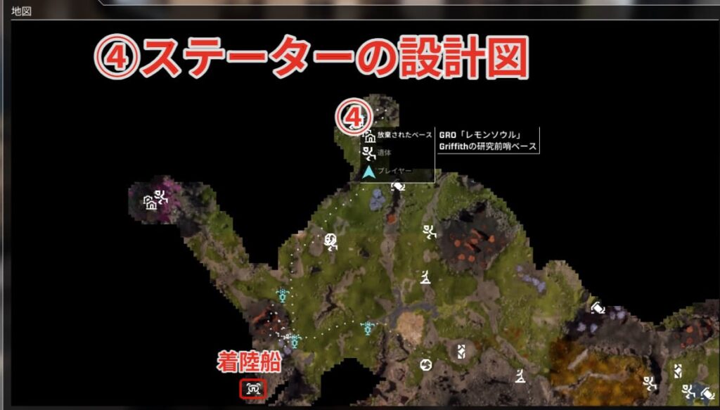 電子部品&ステーターの設計図は着陸船から東にずっと進んだ先の放棄されたベースにあります。