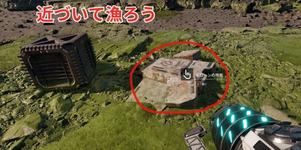 ドローンの残骸を見つけたら近づいて漁ることが出来ます。