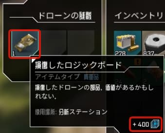ドローンの残骸からは【損傷したロジックボート】が手に入ります。