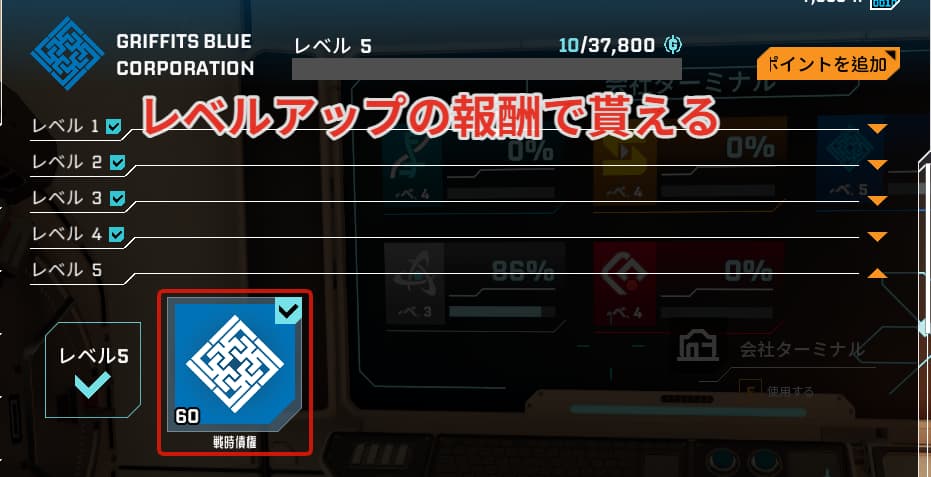 戦時債権は青色の会社のレベルアップ5/710報酬でも貰うことが出来ます。