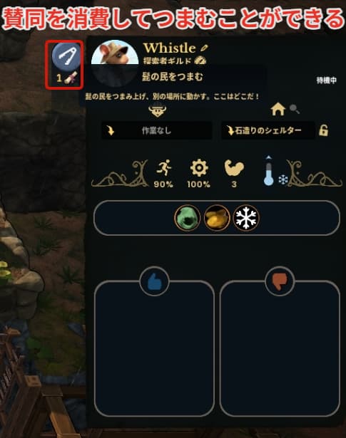 住民を選択すると左上のトングアイコンでつまんで位置を変えることができます。