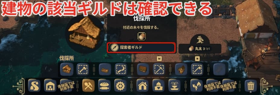 建物ごとの該当ギルドは建築時や建物にカーソルを合わせて確認できます。