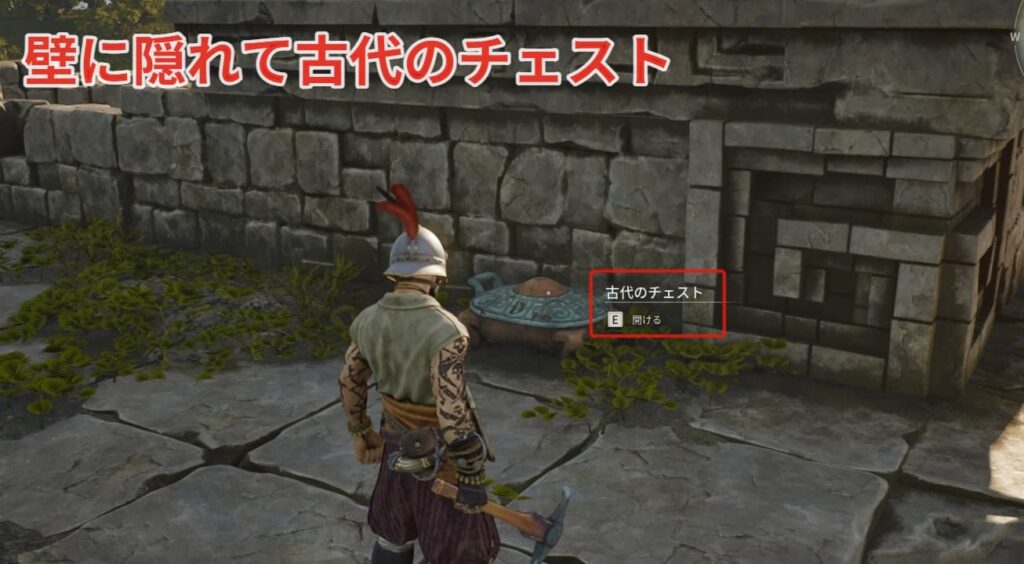 もう1カ所が遺跡の上部の壁に隠れて古代のチェストが置いてあります。