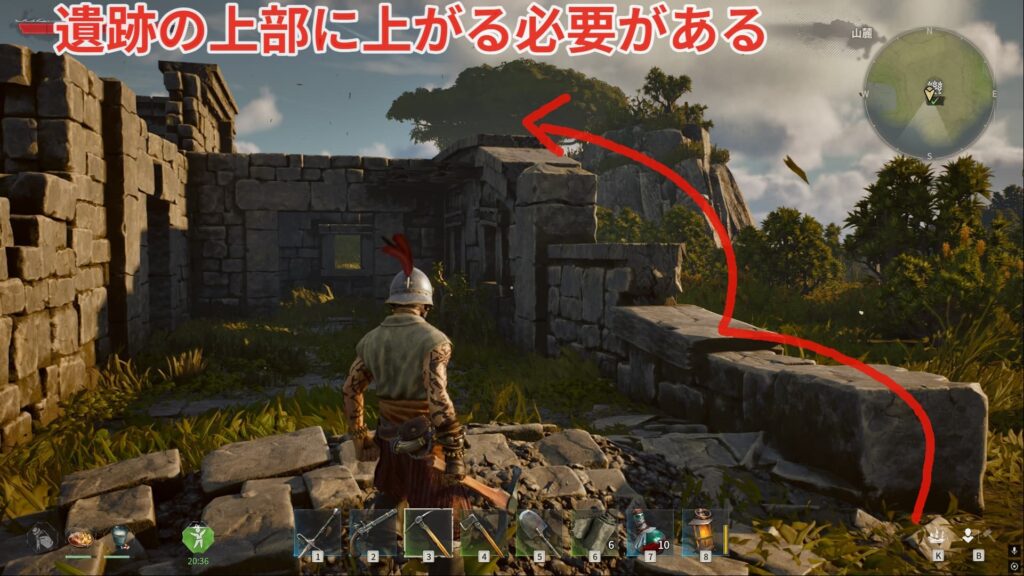 2箇所は地面にあるのですが、残り2箇所は遺跡の上に上がる必要があります。