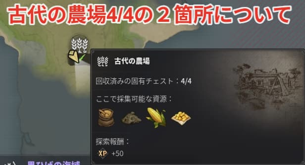 今回は山麓バイオームにある古代の農場4/4の2箇所について紹介していきます。