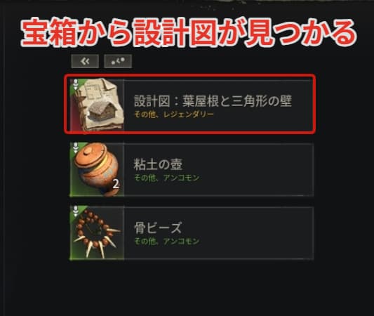 設計図とレシピは探索中に宝箱から見つかることがあります。