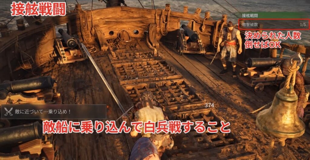 接舷戦闘は海戦時に敵船に乗り込んで白兵戦をすることです。