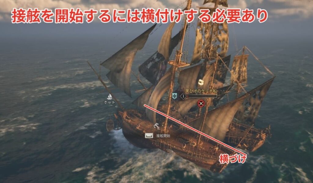 また、接舷を開始するには必ず横付けして【接舷開始】を押しましょう!