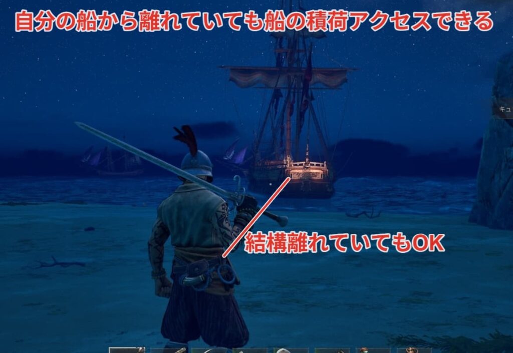 Kキーで船の呼び出し範囲なら余裕でアクセスできます。もう少し離れていても大丈夫