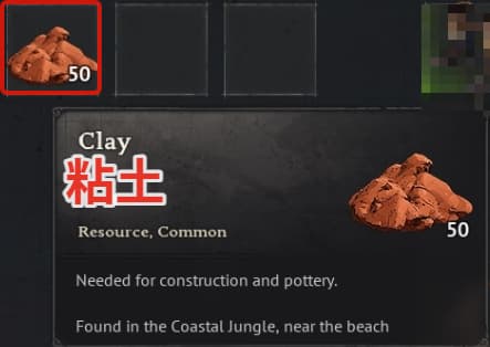 粘土の採取場所は島の砂浜と草地が隣接する場所に発生しやすいです!参考にしてください。