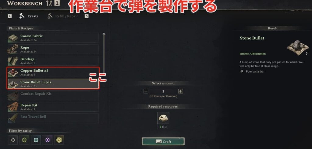 銃を撃ちたい方は火薬を手に入れたら作業台で弾を製作しておきましょう。