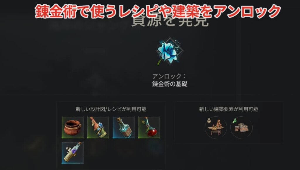 霧の蘭を拾うと錬金術のレシピや建築がアンロックされます。