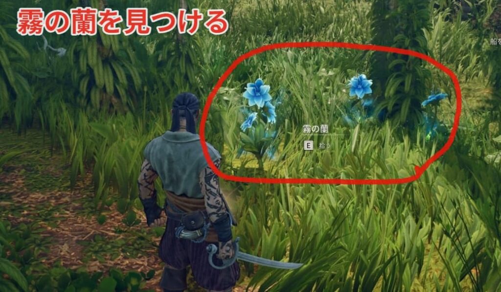 2つ目以降の島で霧の蘭と呼ばれる青い花が生えているので拾いましょう。