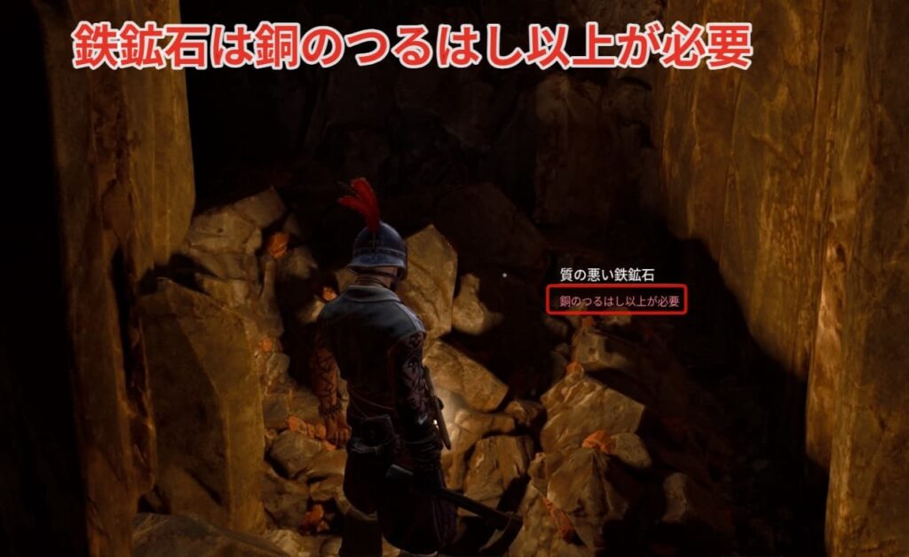 鉄鉱石は銅のつるはし以上が必要なので必ず石のつるはし→銅のつるはしにしておきましょう。