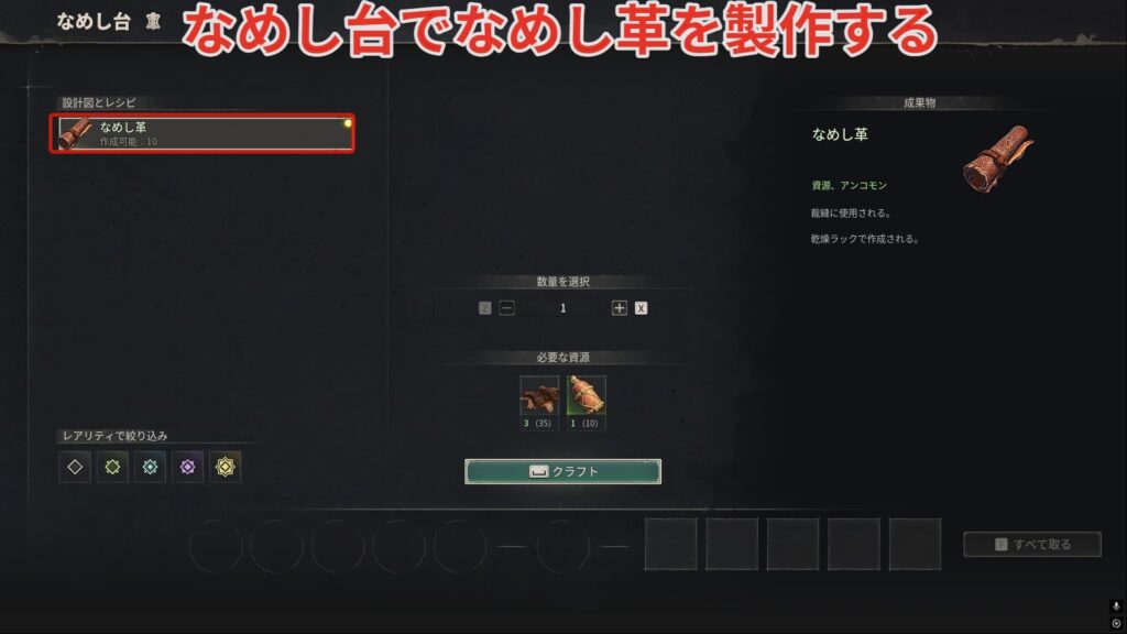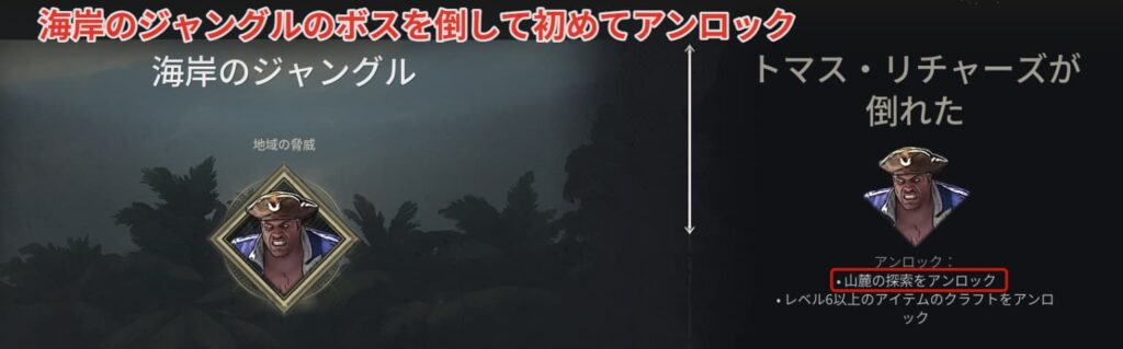 なめし革を入手(製作)できるようにするには海岸のジャングルのボス【トマス・リチャーズ】の討伐が必須になります。