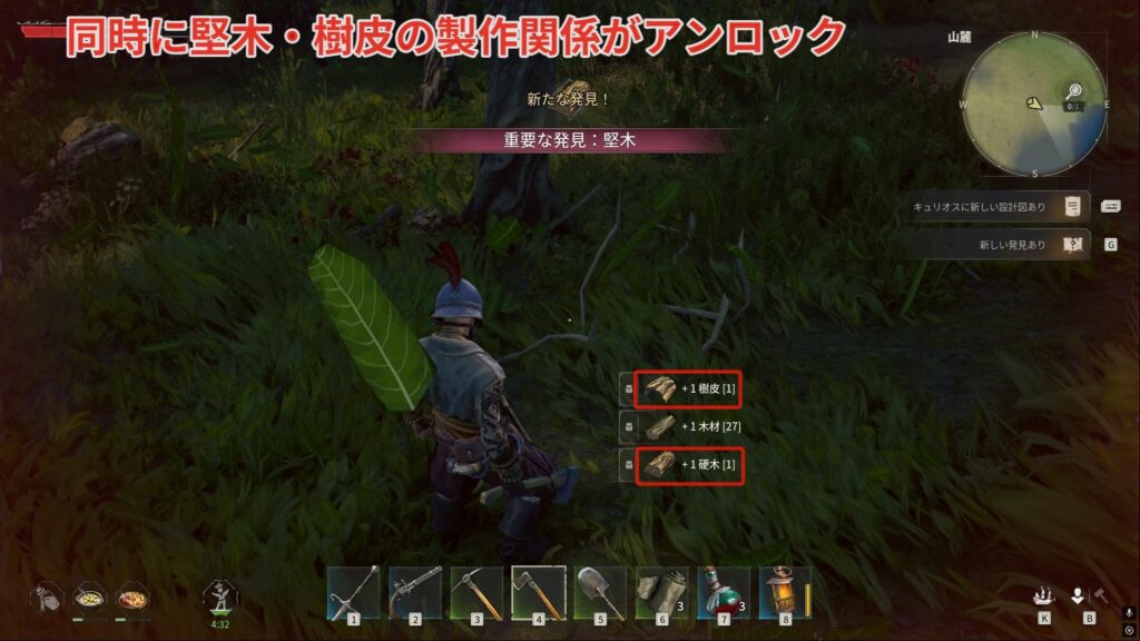 なめし革では樹皮が必要になるので集めましょう!