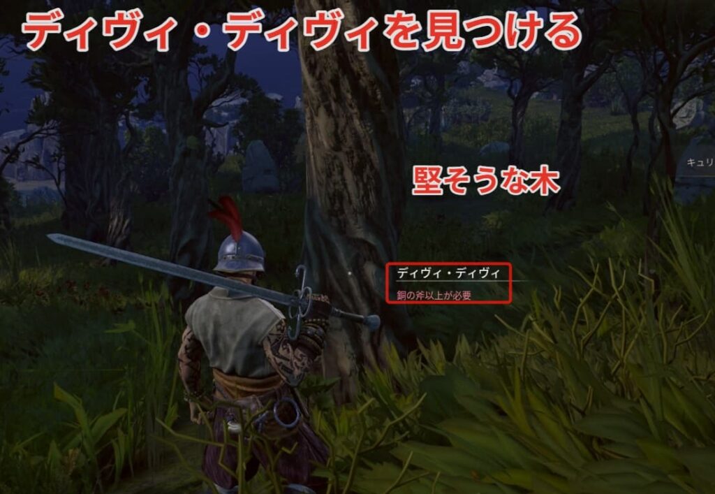 ディヴィ・ディヴィを伐採すると堅木・樹皮が手に入ります。