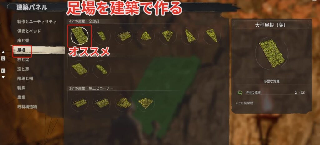 そんな時は建築パネルから足場になりそうな物を設置しましょう。