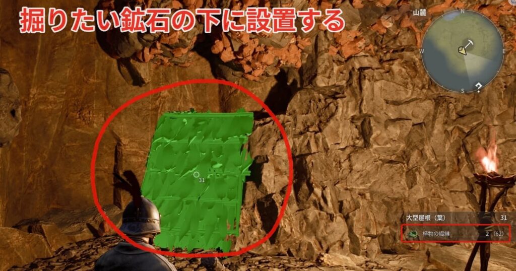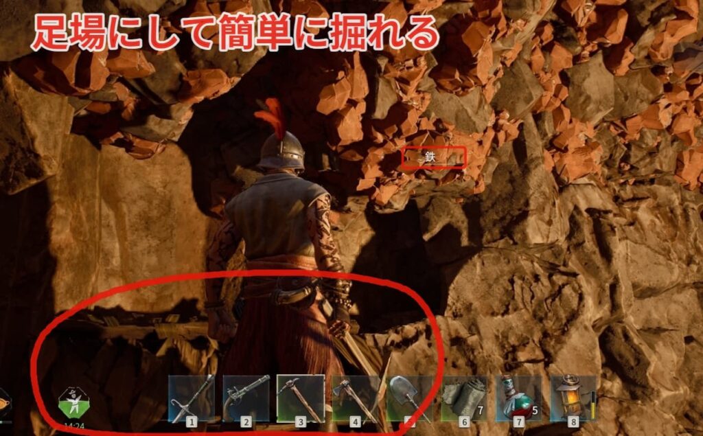 Windroseではジャンプ掘りが出来ない為、頭上の鉱石にツルハシが届かない時があります。
