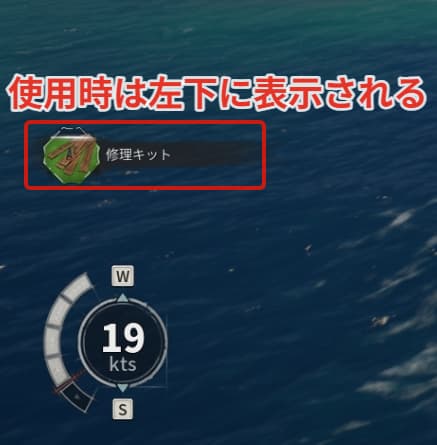こちらは海戦時に戦いながら使えるので上手く修理キットと使い分けていきましょう。