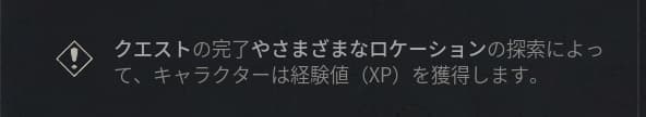 ゲーム内でも【クエストの完了】【ロケーションの探索】が経験値の獲得条件と記載されています。